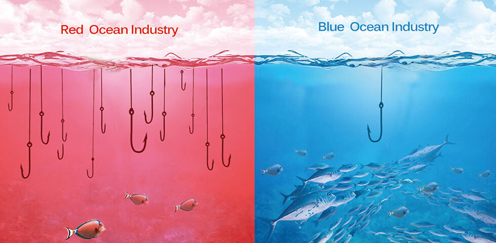 فرض كنيد كه بازار جهاني از دو دسته اقيانوس تشكيل شده است: اقيانوسهاي آبي و اقيانوسهاي قرمز. اقيانوسهاي قرمز معرف صنايعي هستند كه امروزه وجود دارند و فضاهاي شناخته شده بازار هستند. اقيانوسهاي آبي، صنايعي هستند كه در حال حاضر وجود ندارند، اينها فضاهاي شناخته نشده در بازار هستند.